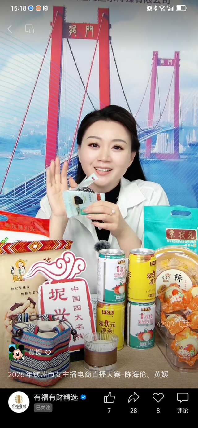 比賽采使用欽州市融媒體中心官方賬號(hào)“有福有財(cái)精選”在規(guī)定的1.5小時(shí)內(nèi)進(jìn)行直播帶貨。期間,參賽者需自行策劃直播流程、設(shè)計(jì)話術(shù)、與觀眾互動(dòng)等。比賽主要考察參賽者的主題把握、內(nèi)容創(chuàng)新、直播節(jié)奏掌控及帶貨能力等。在此次比賽中,陳海倫與黃媛充分展現(xiàn)出精湛實(shí)力,憑借精彩發(fā)揮與卓越表現(xiàn)一路過關(guān)斬將。在她們比賽直播期間,集團(tuán)公司全體員工懷著高漲的熱情,紛紛涌入直播間,大家積極發(fā)送彈幕為她們加油鼓勁,點(diǎn)贊助力,滿屏的支持與鼓勵(lì)營(yíng)造出熱烈氛圍。最終,在全體員工的殷切期盼與加油聲中,陳海倫與黃媛不負(fù)眾望,成功斬獲個(gè)人賽二等獎(jiǎng)的優(yōu)異成績(jī) 。