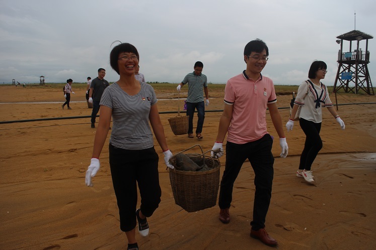 風雨停歇之時,第一、二黨支部全體黨員捋起袖子,提起垃圾筐,在黃金浴場上進行“拉網(wǎng)式”清撿垃圾活動?;顒又校蠹曳止f(xié)作,團結(jié)互助,忙得不亦樂乎,現(xiàn)場一片熱火朝天的景象。沙灘上的垃圾大多為煙蒂、石頭、礦泉水瓶等,考慮群眾在沙灘上大都赤腳走路,為了群眾的安全,黨員們將沙灘上的貝殼也都一并清撿,清除貝類劃傷的風險。其中一位老黨員向大家說到:“大家一定不要覺得清潔活動就只是單純地撿垃圾,我們撿的可都是‘黃金’啊,別看小小一個煙蒂,我們把它撿起來了,環(huán)境就美了,群眾就會更加自覺了,那么誰也不舍得扔下手中的這枚‘黃金’了。所以,我們黨員今天的清潔行動不僅是推行群眾文明出行的理念,更是引導群眾自覺保護環(huán)境,關(guān)愛自然,從而讓清潔、環(huán)保成為每個人的責任。”老黨員看似平淡的話語,卻是對我們的諄諄教導,進一步激發(fā)了我們身為一名共產(chǎn)黨員的責任感和使命感,同時也讓我們深刻認識到生態(tài)環(huán)境建設和保護迫在眉睫。