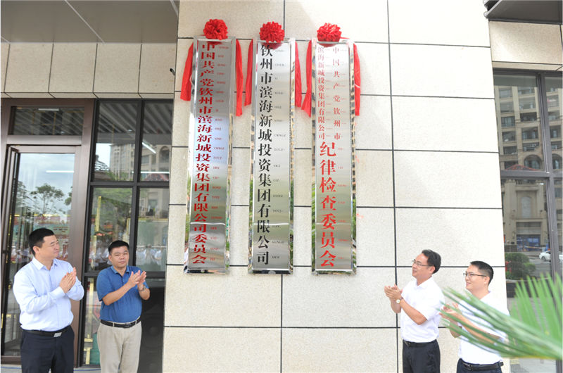 2021年8月12日,欽州市濱海新城投資集團(tuán)有限公司新辦公場(chǎng)所揭牌儀式順利舉行。10點(diǎn)28分,市委常委、副市長姚永福,市國資委副主任陸世球,集團(tuán)公司總經(jīng)理黃兆明、黨委副書記卜玉聲,共同揭牌。紅幕徐徐落下,現(xiàn)場(chǎng)響起一片熱烈的掌聲。揭牌儀式由集團(tuán)公司副總經(jīng)理?xiàng)钚聴澲鞒帧?揭牌儀式結(jié)束后,姚永福、陸世球參觀集團(tuán)公司新辦公場(chǎng)所,與集團(tuán)公司領(lǐng)導(dǎo)座談。