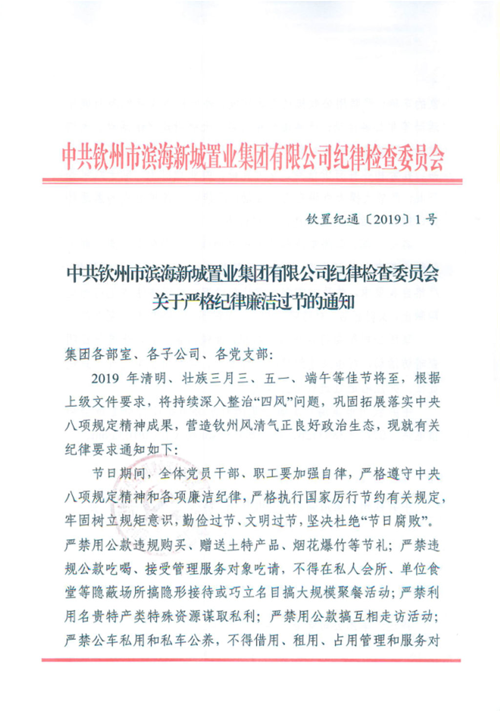 為強化重要節(jié)日節(jié)點紀(jì)律要求,嚴(yán)防“四風(fēng)”問題反彈回潮,努力營造崇廉尚儉、風(fēng)清氣正的節(jié)日氛圍。集團(tuán)公司紀(jì)委印發(fā)了《關(guān)于嚴(yán)格紀(jì)律廉潔過節(jié)的通知》。