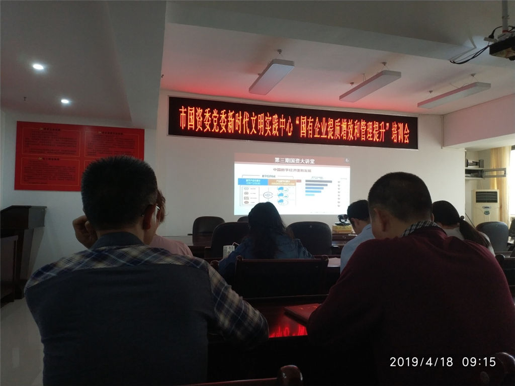 4 月 18 日 上 午 9:00 , 在 市 國 資 委 1220 會(huì) 議 室 舉 行 了 第 三期國資大講壇視頻會(huì)議, 會(huì)議主題為國有企業(yè)提質(zhì)增效管 理和提升。
