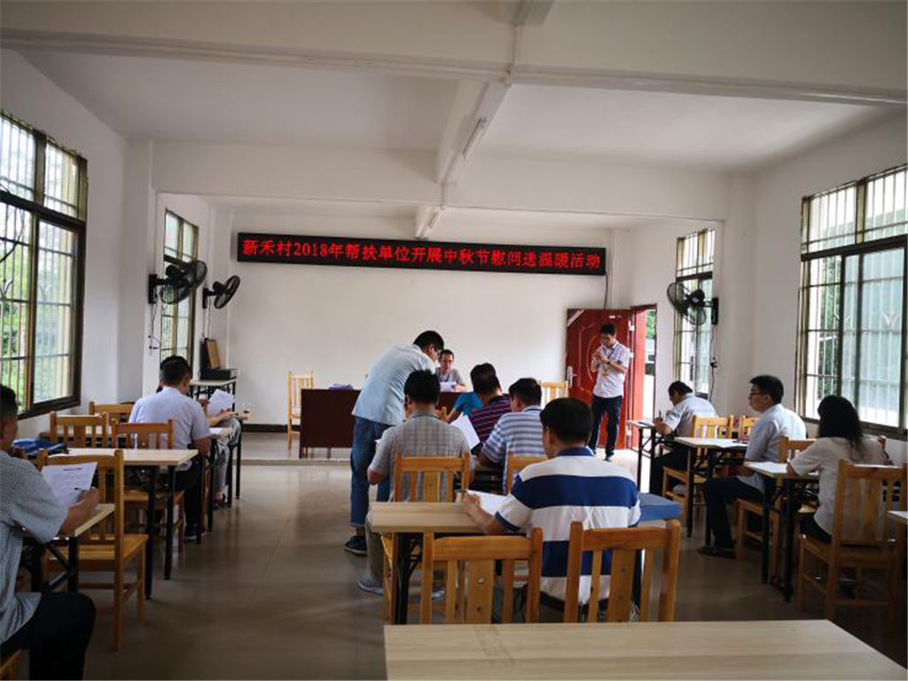 在中秋佳節(jié)來臨之際,9月19日上午,集團(tuán)公司副總經(jīng)理?xiàng)钚聴?、余業(yè)勝率部分黨員干部來到結(jié)對幫扶貧困村新禾村,對村干部、貧困戶開展節(jié)前慰問活動,提前為他們送去節(jié)日的祝福和問候,讓他們在傳統(tǒng)節(jié)日感受到幫扶單位的濃濃情意。
