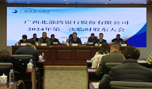 2024年1月25日,廣西北部灣銀行股份有限公司2024年第一次臨時股東大會在廣西北部灣銀行總行4樓406報告廳順利召開。此次會議由廣西北部灣銀行股份有限公司董事會召集,黎棟國董事長主持。廣西投資集團(tuán)金融控股有限公司、巨人投資有限公司、廣西出版?zhèn)髅郊瘓F(tuán)有限公司及欽州市濱海新城投資集團(tuán)有限公司等股東及股東代理人出席會議。