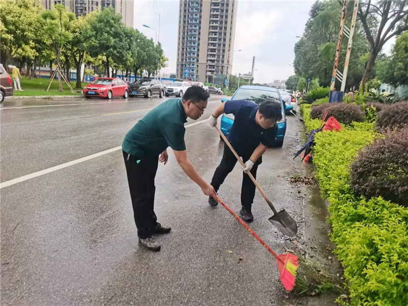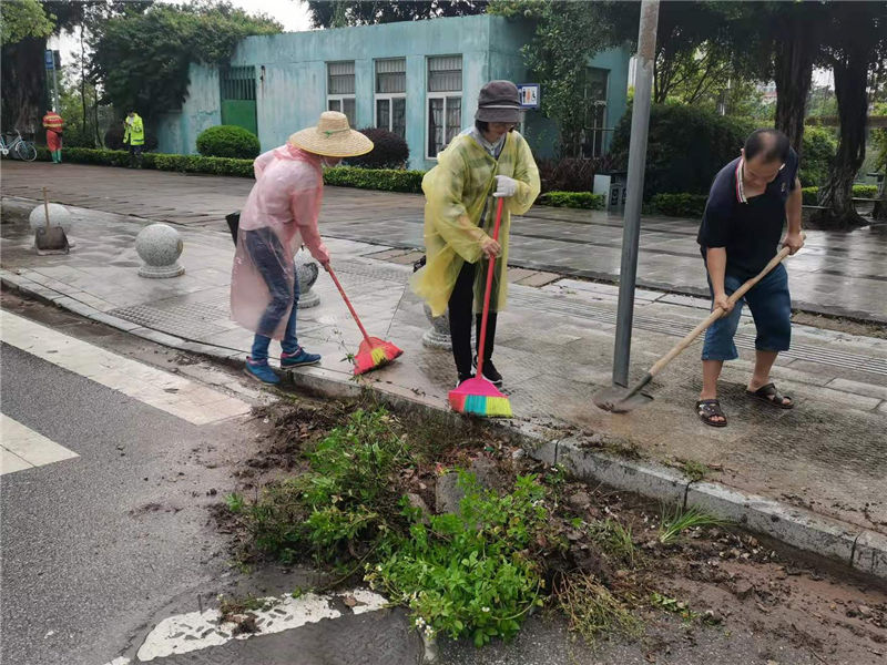 活動(dòng)當(dāng)天,煙雨朦朧。志愿者們有的拿著鏟子,有的拿著掃把,有的拿著垃圾簍,冒雨干起活來(lái)。