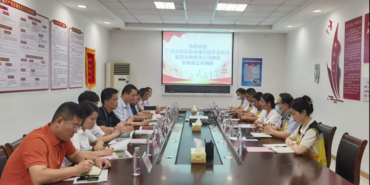 為推動國有企業(yè)之間的資源整合、優(yōu)勢互補,共同推動供應鏈業(yè)務補鏈強鏈,5月19日上午, 廣西自貿區(qū)欽州港片區(qū)開發(fā)投資集團有限責任公司(以下簡稱自貿開投集團)總經理助理麥亮率調研組到市濱海供應鏈公司考察調研。市濱海投資集團公司總工程師廖相榮、市濱海供應鏈公司執(zhí)行董事兼總經理吳廣明及有關領導陪同調研并座談。