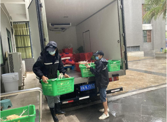 圖為風(fēng)雨無阻,配送員準(zhǔn)時(shí)安全配送各大考點(diǎn),等待卸貨