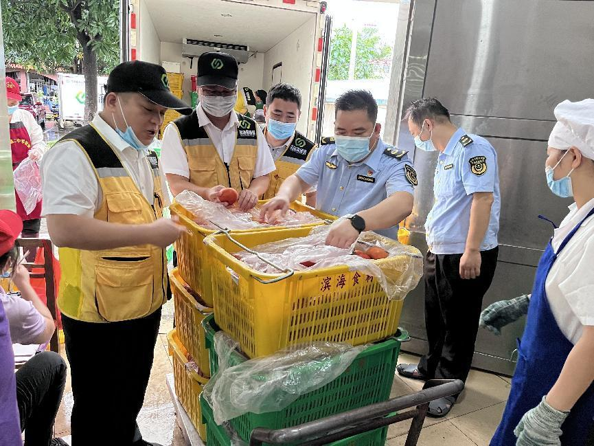 在保供工作進(jìn)行中,濱海供應(yīng)鏈公司始終堅(jiān)持做到:一、主動(dòng)接受行業(yè)主管部門的檢查,積極與市直和南北區(qū)市場監(jiān)管部門保持溝通,按要求做好質(zhì)量把控、索證索票、留樣檢測等工作;二、從“食材安全衛(wèi)生、配送安全準(zhǔn)時(shí)”為理念,以“五保障”協(xié)議做抓手,工作人員前置農(nóng)產(chǎn)品基地和源頭供應(yīng)商,確保食材質(zhì)量;三、安排食材檢測員貫徹落實(shí)索證索票工作,嚴(yán)格開展檢測工作,杜絕三無、有毒有害、過期變質(zhì)等不良品外流,對(duì)配送的食材共開展了306批次食材快檢,確保合格率達(dá)到100%;四、以黨建促業(yè)務(wù),充分發(fā)揮黨支部戰(zhàn)斗堡壘作用,以黨員先鋒隊(duì)作為主力軍前置各考點(diǎn),確保食材保質(zhì)保量以及準(zhǔn)時(shí)到校,并配合食材檢查和驗(yàn)收工作;五、充分利用食安平臺(tái)明廚亮灶系統(tǒng),有力監(jiān)控跟蹤保障食材安全配送,同時(shí)強(qiáng)調(diào)產(chǎn)品溯源,加強(qiáng)校企聯(lián)動(dòng),做好應(yīng)急準(zhǔn)備。