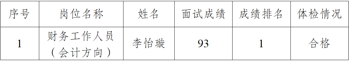根據(jù)集團(tuán)公司2024年8月13日發(fā)布的《欽州市濱海新城投資集團(tuán)有限公司招聘公告》,經(jīng)報名、資格審查、面試、考察、體檢等程序,經(jīng)集團(tuán)公司黨委研究決定,現(xiàn)對欽州市濱海投資集團(tuán)有限公司財務(wù)工作人員(會計方向)崗位擬聘用人選予以公示。