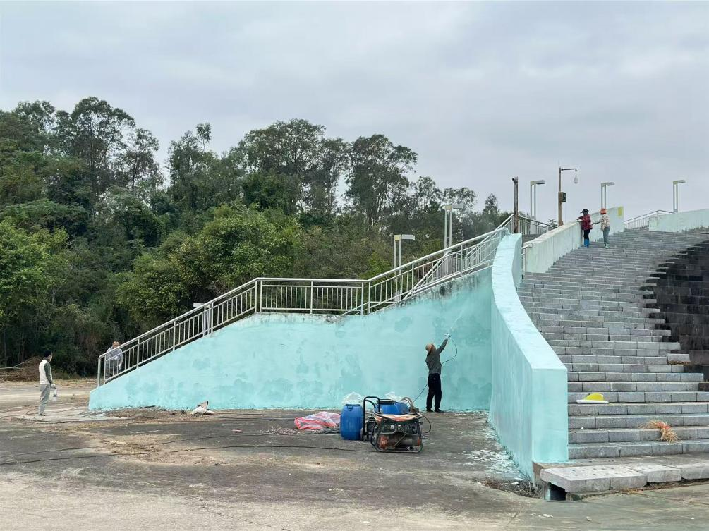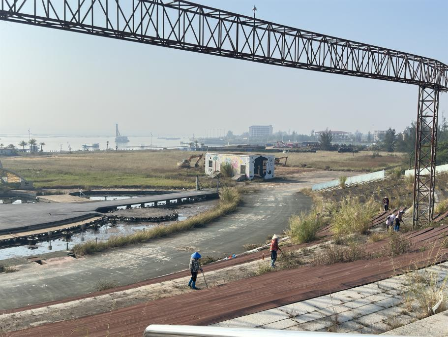 此次場地清理工作涉及范圍廣泛,涵蓋了活動核心區(qū)域及周邊地帶。從布滿雜草的沙灘場地到零散分布的各類垃圾,清理團隊分工明確、配合默契,有條不紊地推進著每一項清理任務。目前共累計清理各類垃圾雜物百余噸,其中包括廢棄的蠔殼、塑料垃圾、漂浮物、雜草等。人工配合機械打草約43000㎡,機械平整場地約3100㎡,更換塑木生態(tài)板113㎡,墻面噴漆約1000㎡,清洗水池約2900㎡,維修廁所一座,安裝化糞池兩個,拉電纜約1200米,做到了主會場全部通水通電,使海灘恢復了自然整潔的風貌,完善了蠔情廣場的交通指示標志,為蠔情節(jié)期間的海灘活動提供了安全舒適的場地。