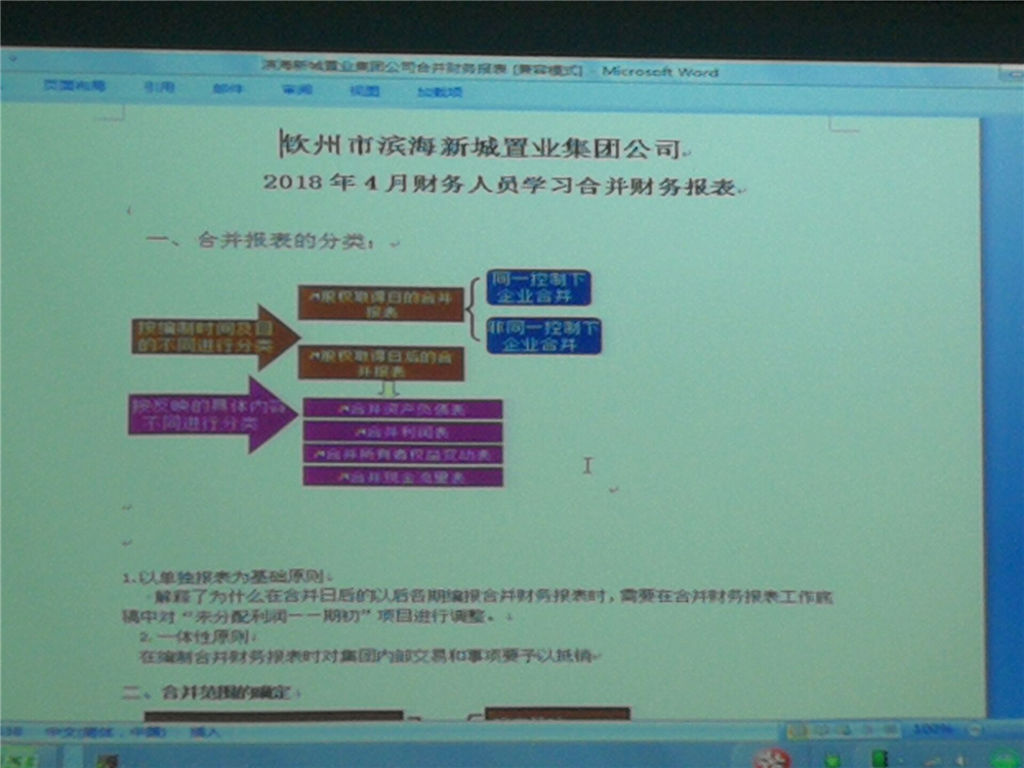 為了提高財務(wù)人員財務(wù)報表編報質(zhì)量和工作效率,2018年4月15日上午,計劃財務(wù)部李東波經(jīng)理主持召開學(xué)習(xí)會,學(xué)習(xí)編制合并報表的相關(guān)業(yè)務(wù)知識,集團及各子公司全體財務(wù)人員參會學(xué)習(xí)。會上洪家泰副經(jīng)理講解了合并會計報表及附注的編制方法及要求,規(guī)范和統(tǒng)一報表和附注的格式,并針對同一控制下企業(yè)合并及非同一控制下企業(yè)合并的少數(shù)股東權(quán)益、歸屬于母公司所有者權(quán)益進(jìn)行了詳細(xì)講解。
