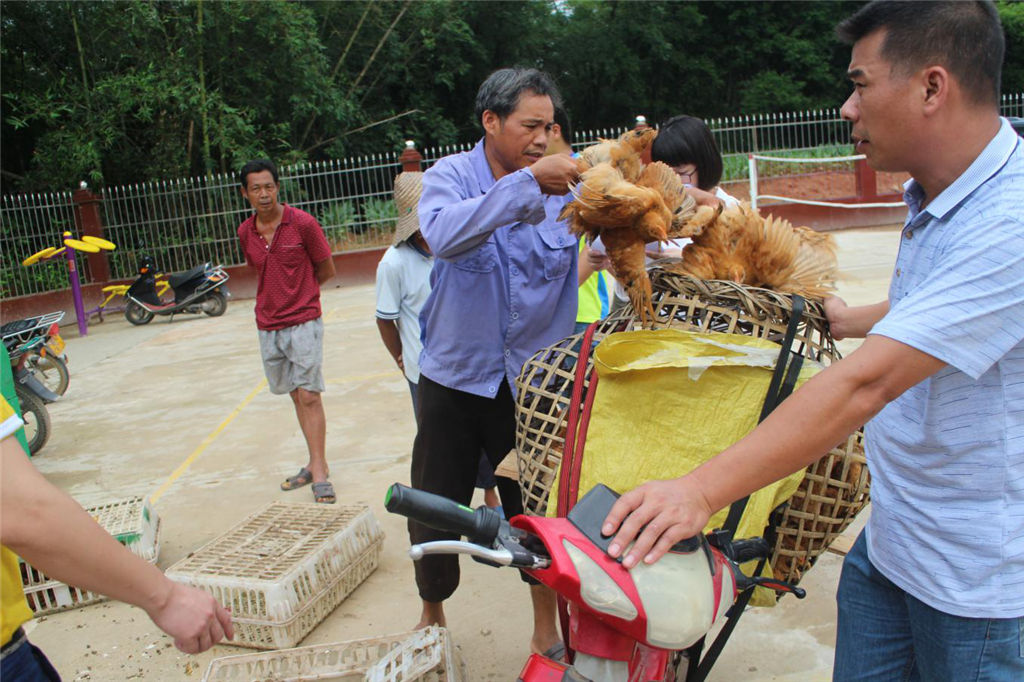 當天上午,運送雞苗的貨車從欽州市出發(fā),經(jīng)過1個小時的行程來到了靈山縣伯勞鎮(zhèn)新禾村公共服務中心,此時,貧困戶們已經(jīng)滿心歡喜地到來,攜帶裝雞苗的籠子耐心等候著。現(xiàn)場,集團公司副總經(jīng)理楊新棟在工作人員的協(xié)助下,依次給貧困戶們發(fā)放了雞苗,楊新棟笑著對貧困戶說到:“大家領取到的雞苗平均每只重600克左右,雞苗在運出養(yǎng)殖場之前都已閹割過了,具有生長發(fā)育快、抗病能力強、成活率高、市場效益好等特點,大家回去后要管護好雞苗,讓扶貧雞真正為大家?guī)砻撠毾M?rdquo;,看著一只只活潑亂跳、帶著脫貧希望的雞苗裝進了自家的籠子里,貧困戶們笑得合不攏嘴,心里樂開了花。