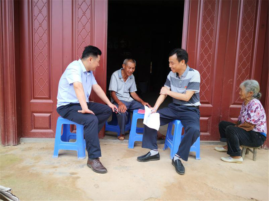 (圖為幫扶干部正在向幫扶對(duì)象傳達(dá)產(chǎn)業(yè)獎(jiǎng)補(bǔ)政策)
