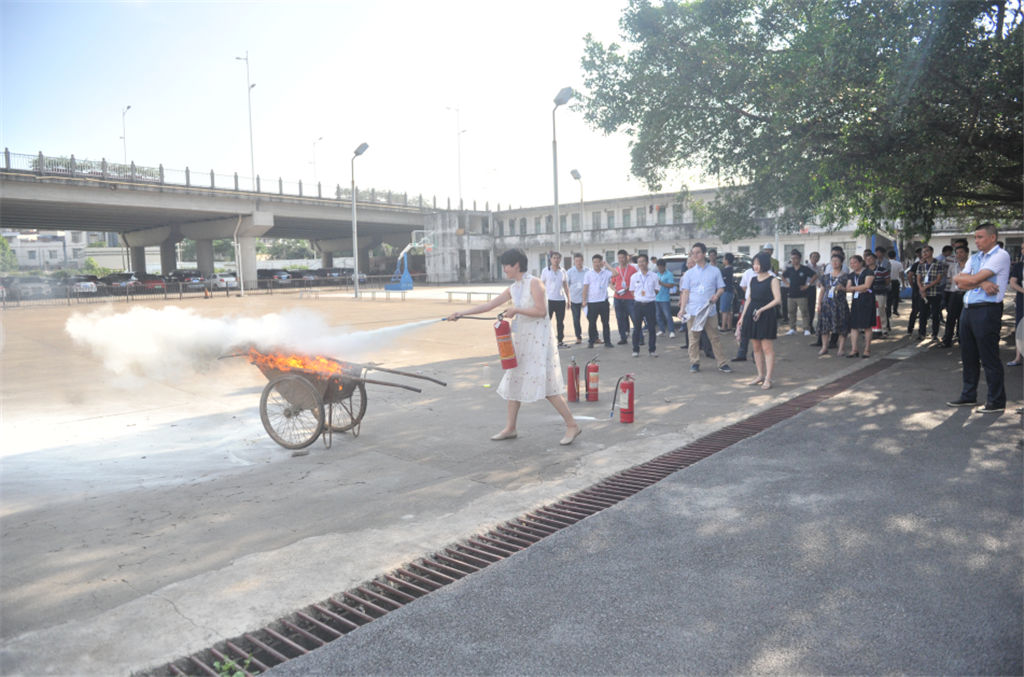 授課后,在張教官帶領(lǐng)下開展了人員密集公共場所疏散及滅火器操作的實物演練。