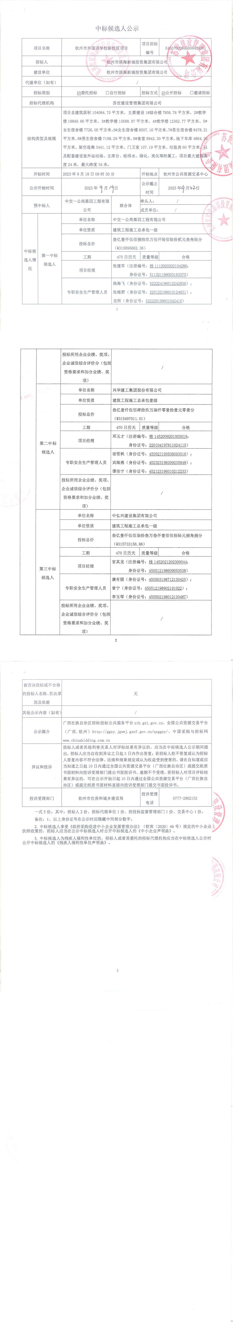欽州市人才創(chuàng)業(yè)基地小區(qū)消防安全維修工程中標(biāo)候選人公示