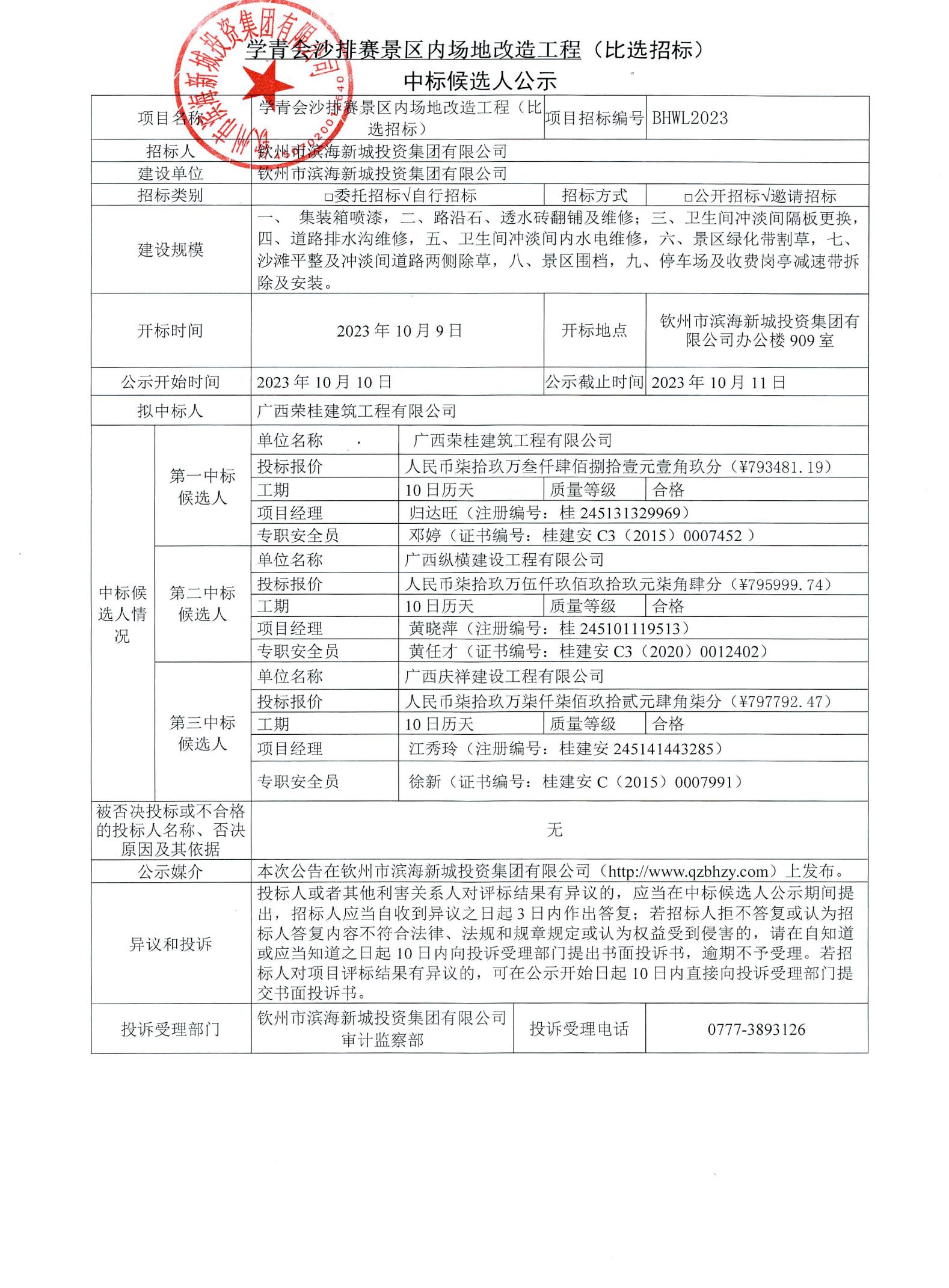 學(xué)青會(huì)沙排賽景區(qū)內(nèi)場地改造工程(比選招標(biāo))中標(biāo)候選人公示