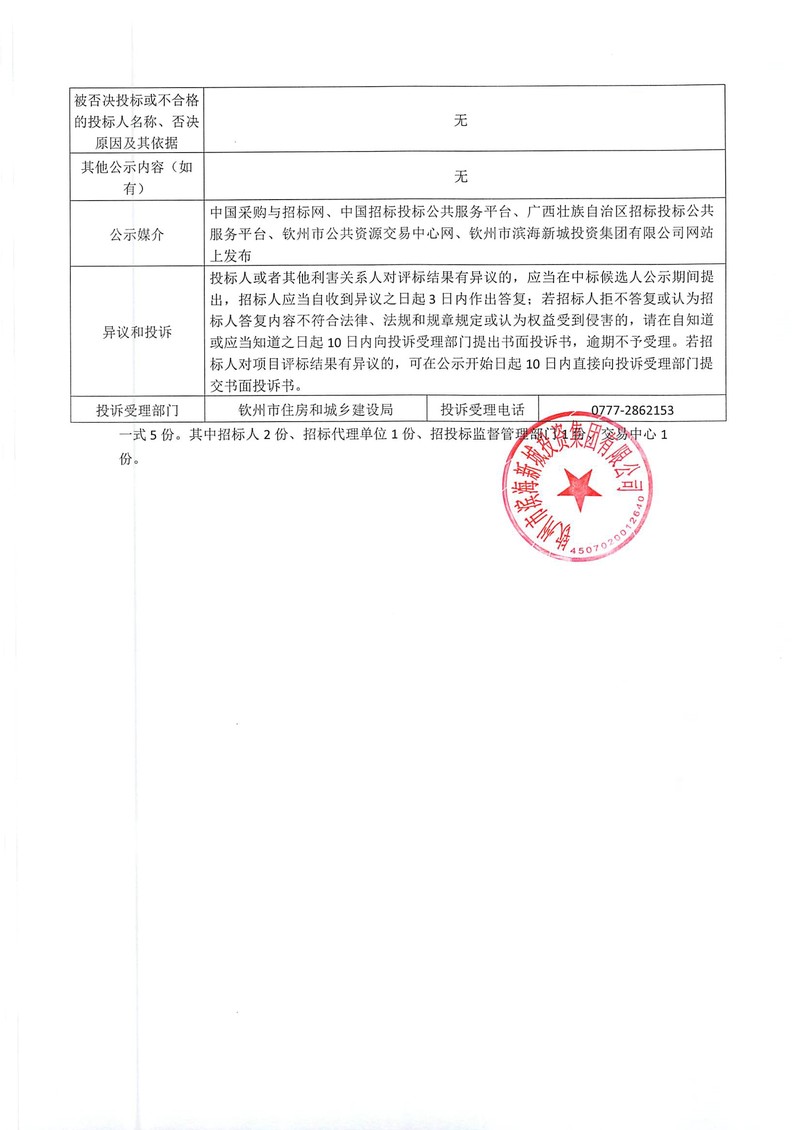 欽州市奧林名城6#樓20套人才公寓裝家電采購項目中標候選人公示