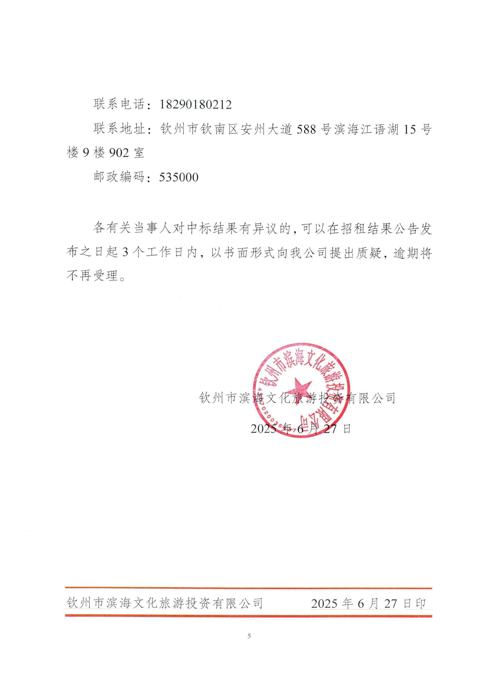 欽州市濱海文化旅游投資有限公司關(guān)于欽州市老街范圍二馬路43號房屋公開招租結(jié)果公示