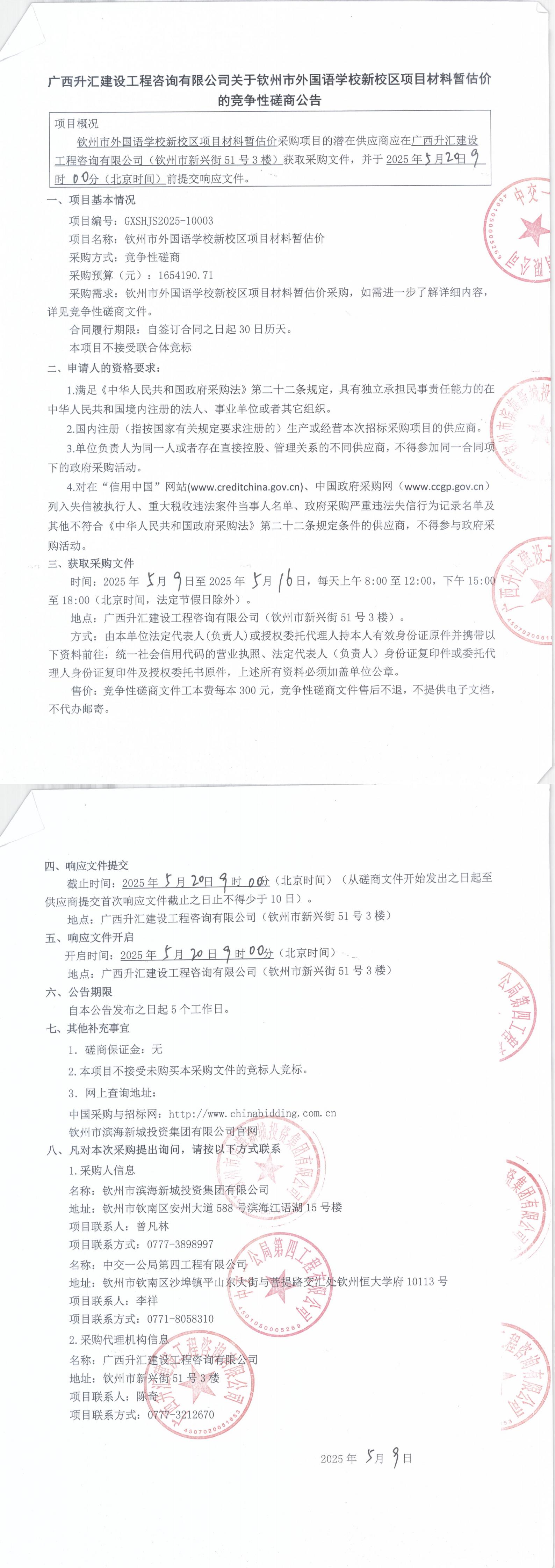 關(guān)于欽州市外國語學(xué)校新校區(qū)項目材料暫估價的競爭性磋商公告