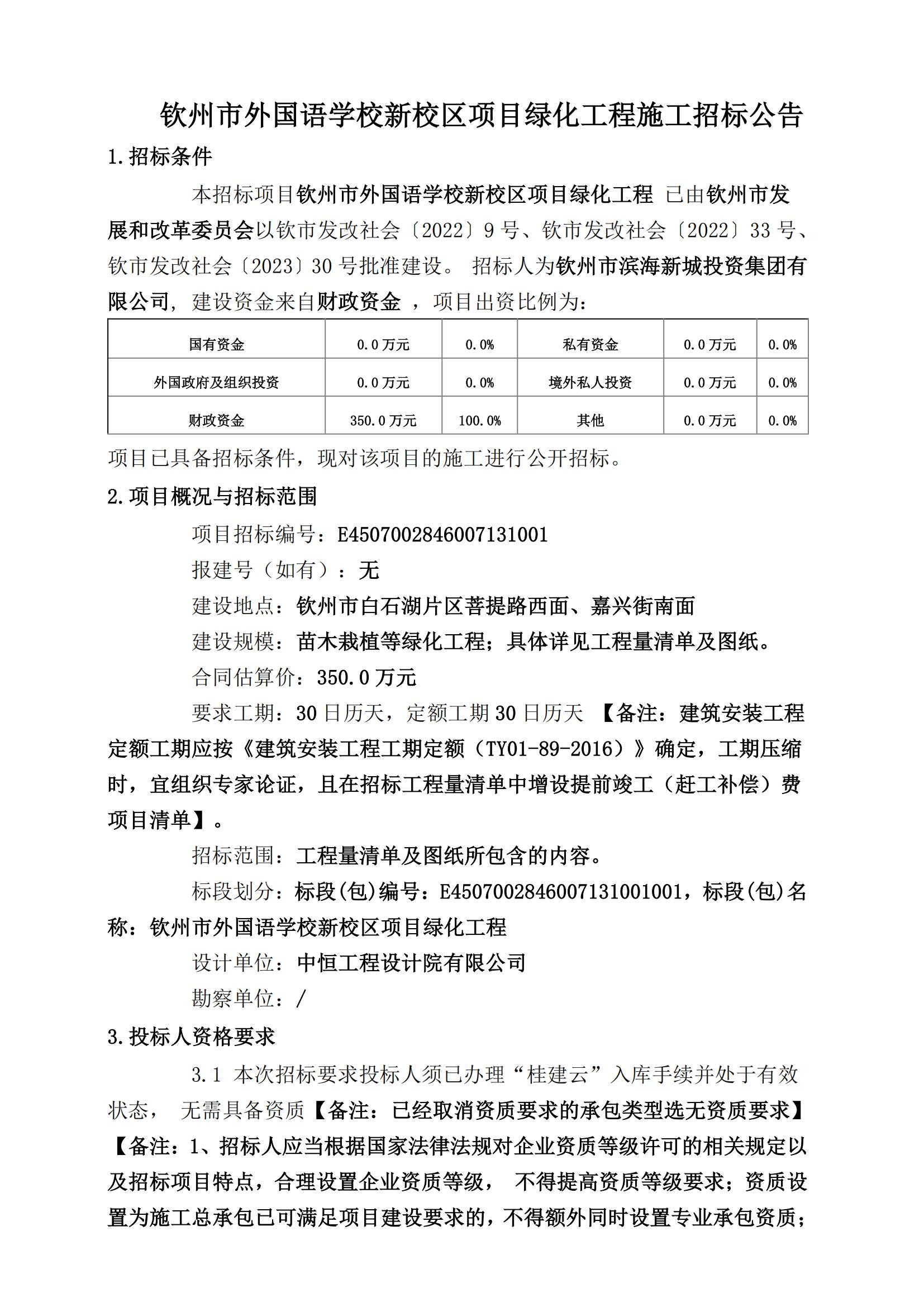 欽州市外國語學(xué)校新校區(qū)項目綠化工程施工招標(biāo)公告