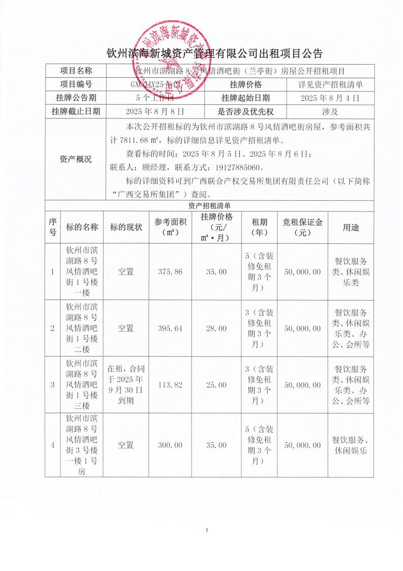 欽州濱海新城資產(chǎn)管理有限公司旺鋪及地塊對外招租公告