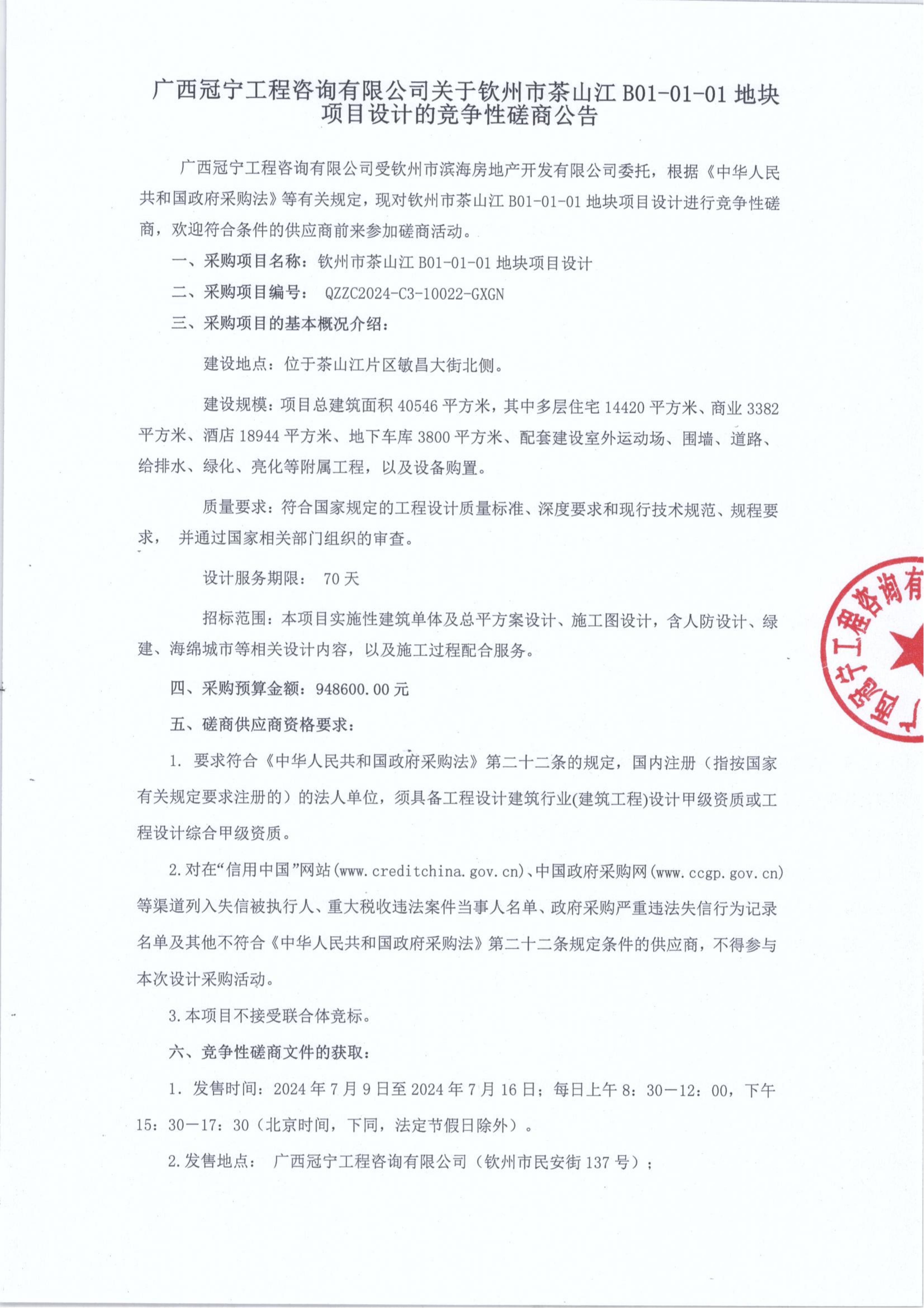 1.招標(biāo)條件 本招標(biāo)項目欽州北部灣大學(xué)大門商業(yè)街地塊項目設(shè)計已由廣西投資項目在線審批監(jiān)管平臺以備案形式批準(zhǔn)建設(shè),招標(biāo)人為欽州市濱海房地產(chǎn)開發(fā)有限公司,建設(shè)資金來自國有資金,項目出資比例為: ...