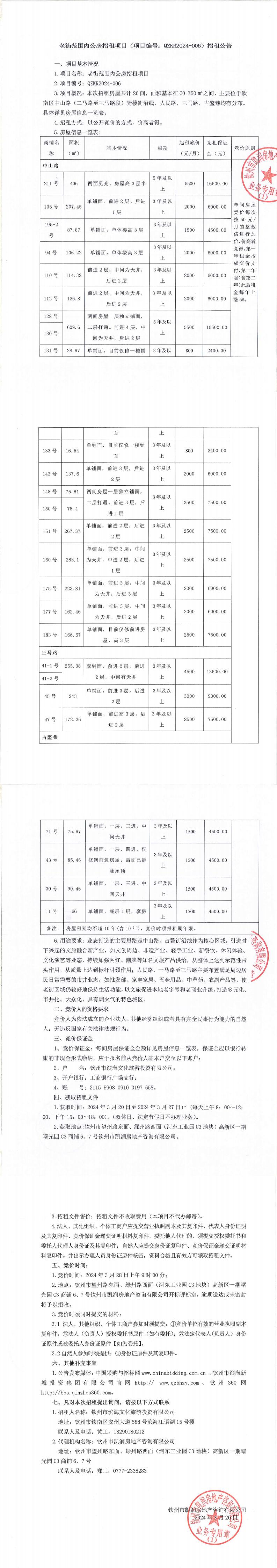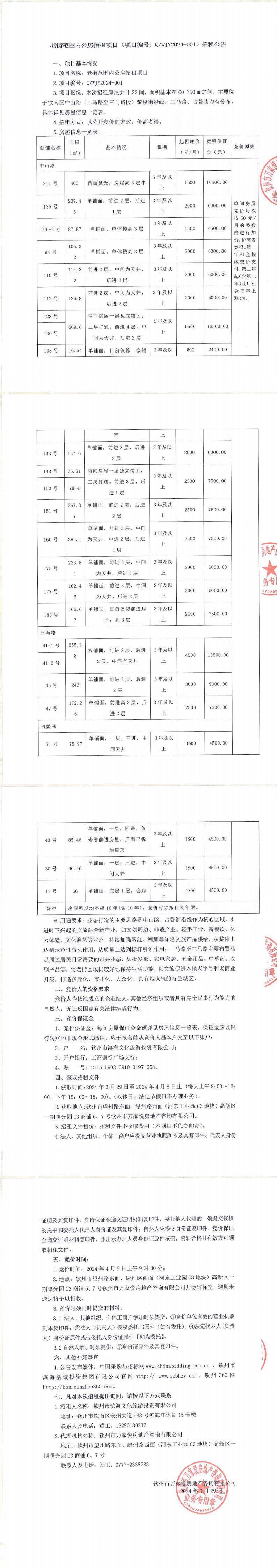 關于欽州市老街范圍中山路騎樓街沿線及人民路、三馬路、占鰲巷30間商鋪整體公開招租的公告