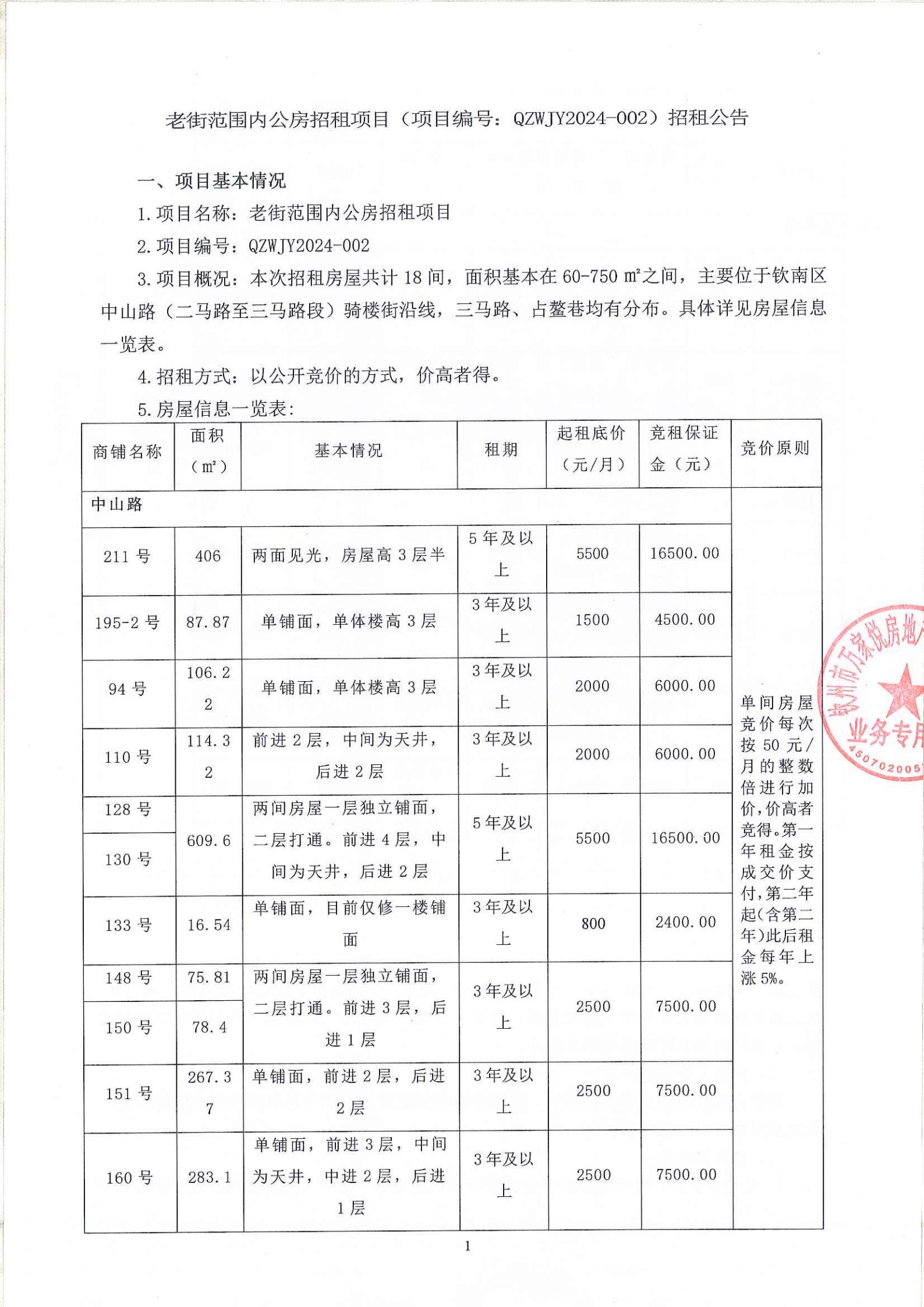 老街范圍內公房招租項目(項目編號:QZWJY2024-001)招租公告