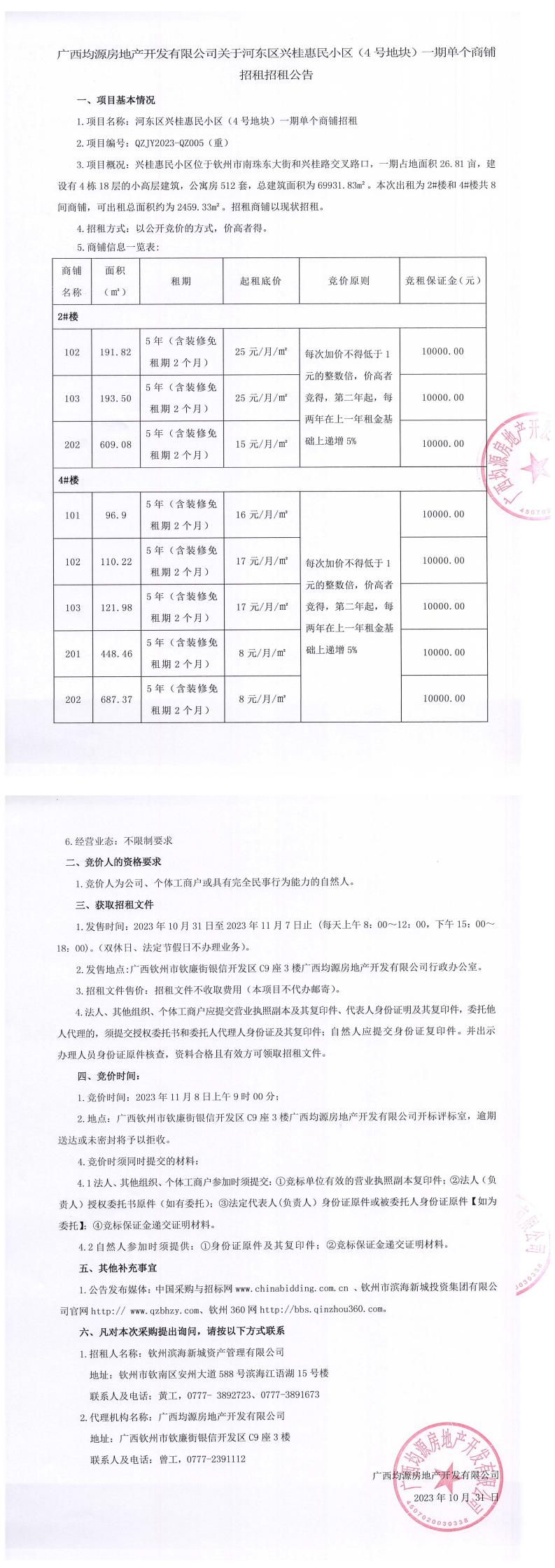 興桂惠民小區(qū)(4號地塊)一期單個商鋪招租招租公告