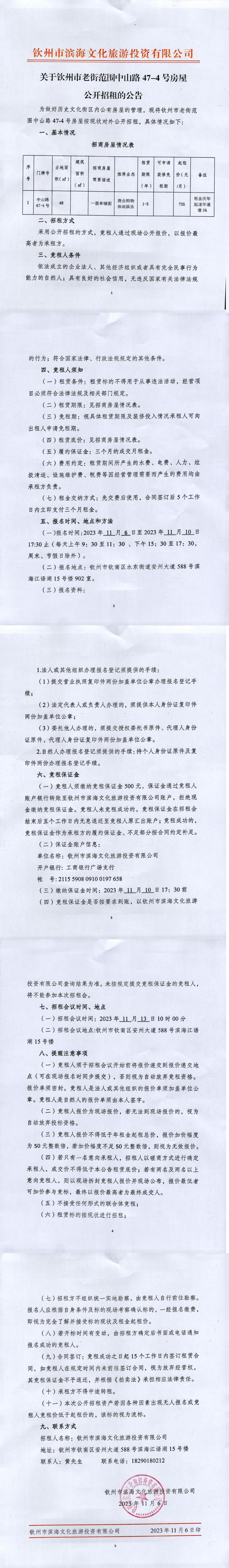 關(guān)于欽州市老街范圍中山路47號、二馬路17號、人民路118號等七處房屋公開招租的公告