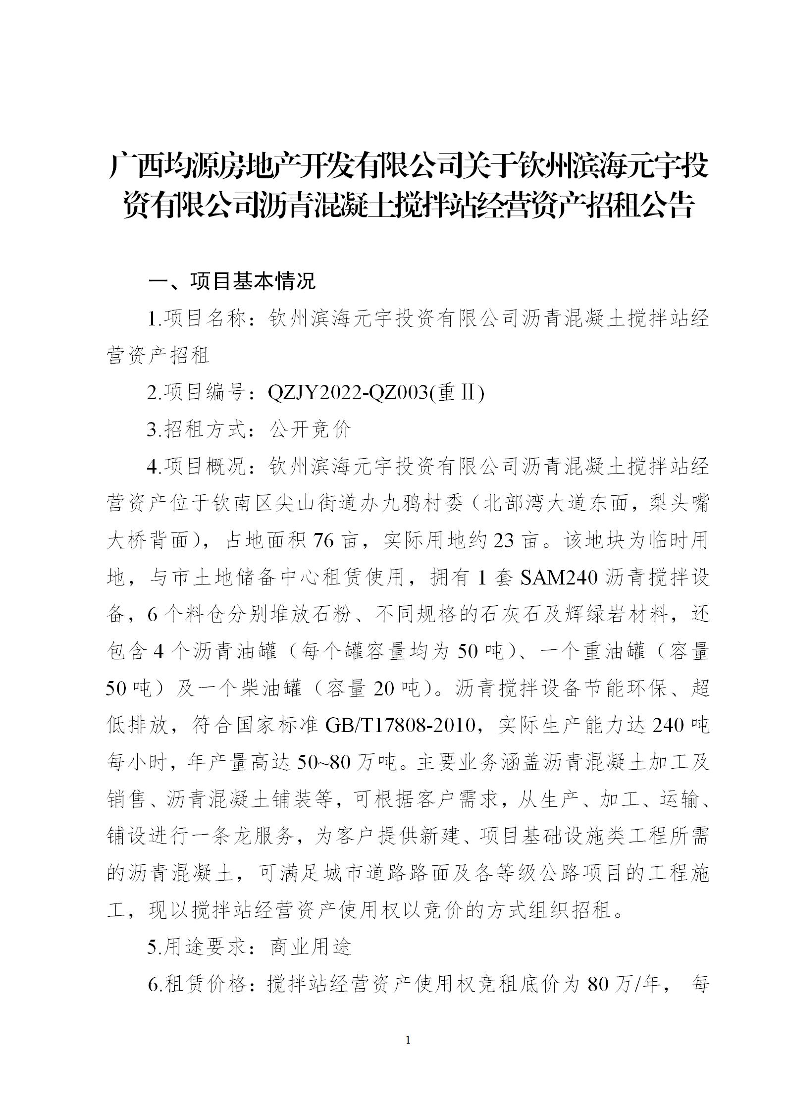 關(guān)于欽州濱海元宇投資有限公司瀝青混凝土攪拌站經(jīng)營(yíng)資產(chǎn)招租公告