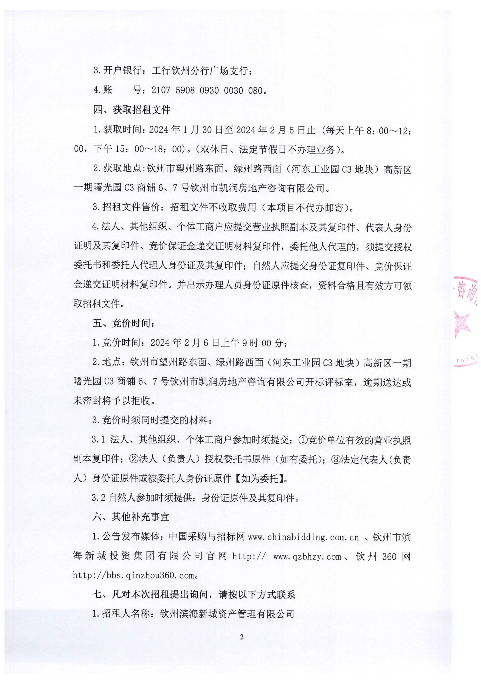 關(guān)于欽州市老街范圍人民南路118號(hào)房屋公開招租的公告