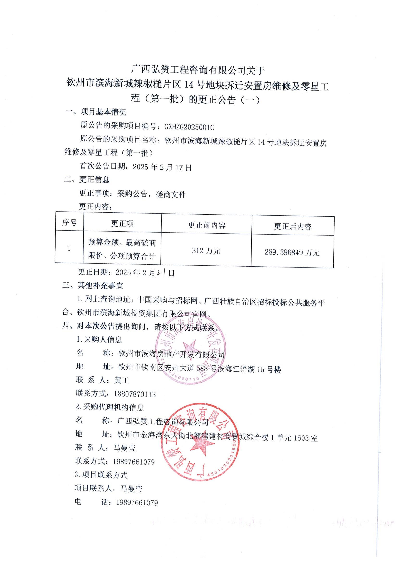 欽州市濱海新城辣椒槌片區(qū)14號地塊拆遷安置房維修及零星工程(第一批)的更正公告