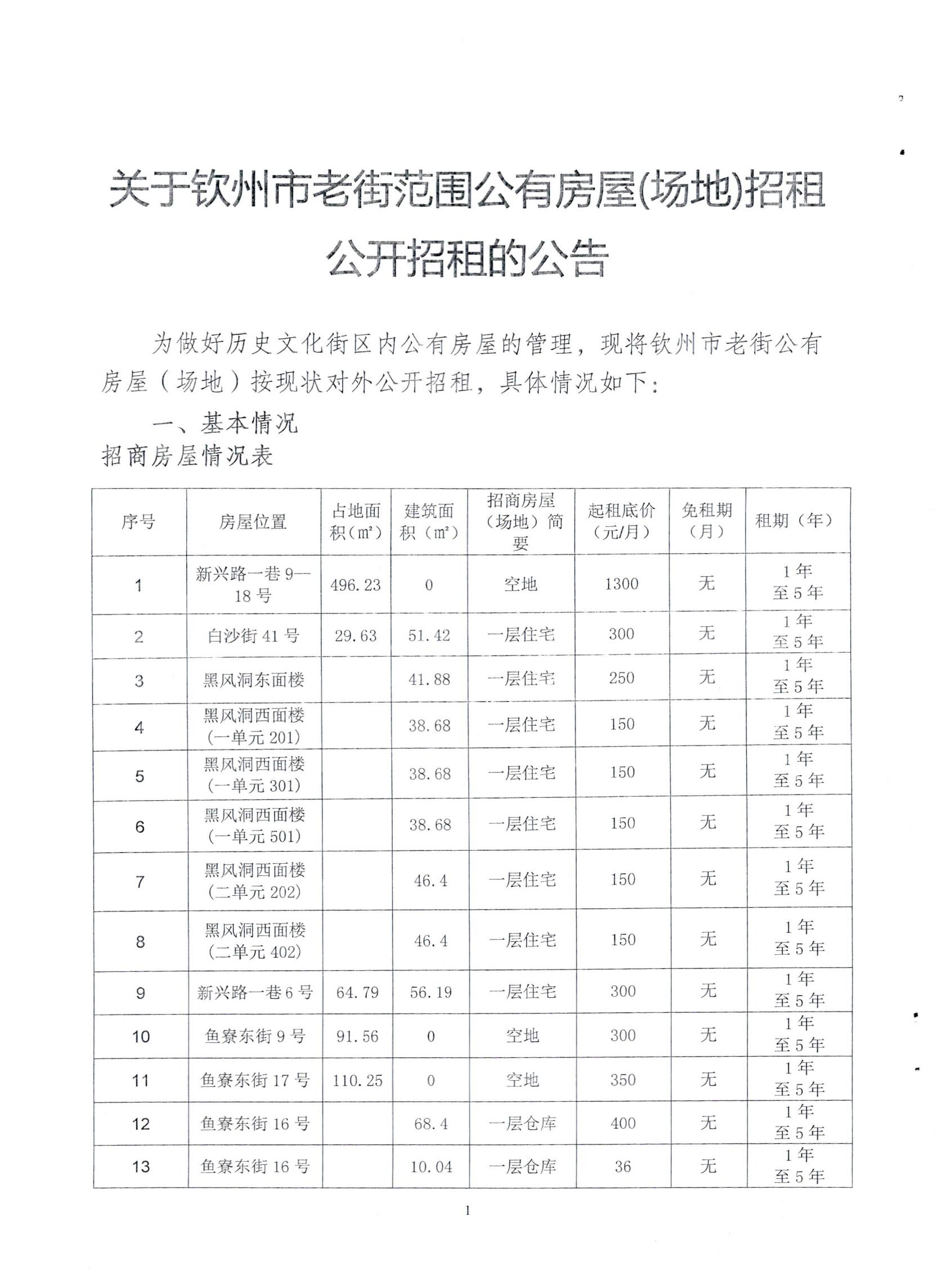 欽州市老街范圍二馬路43號(hào)房屋公開招租