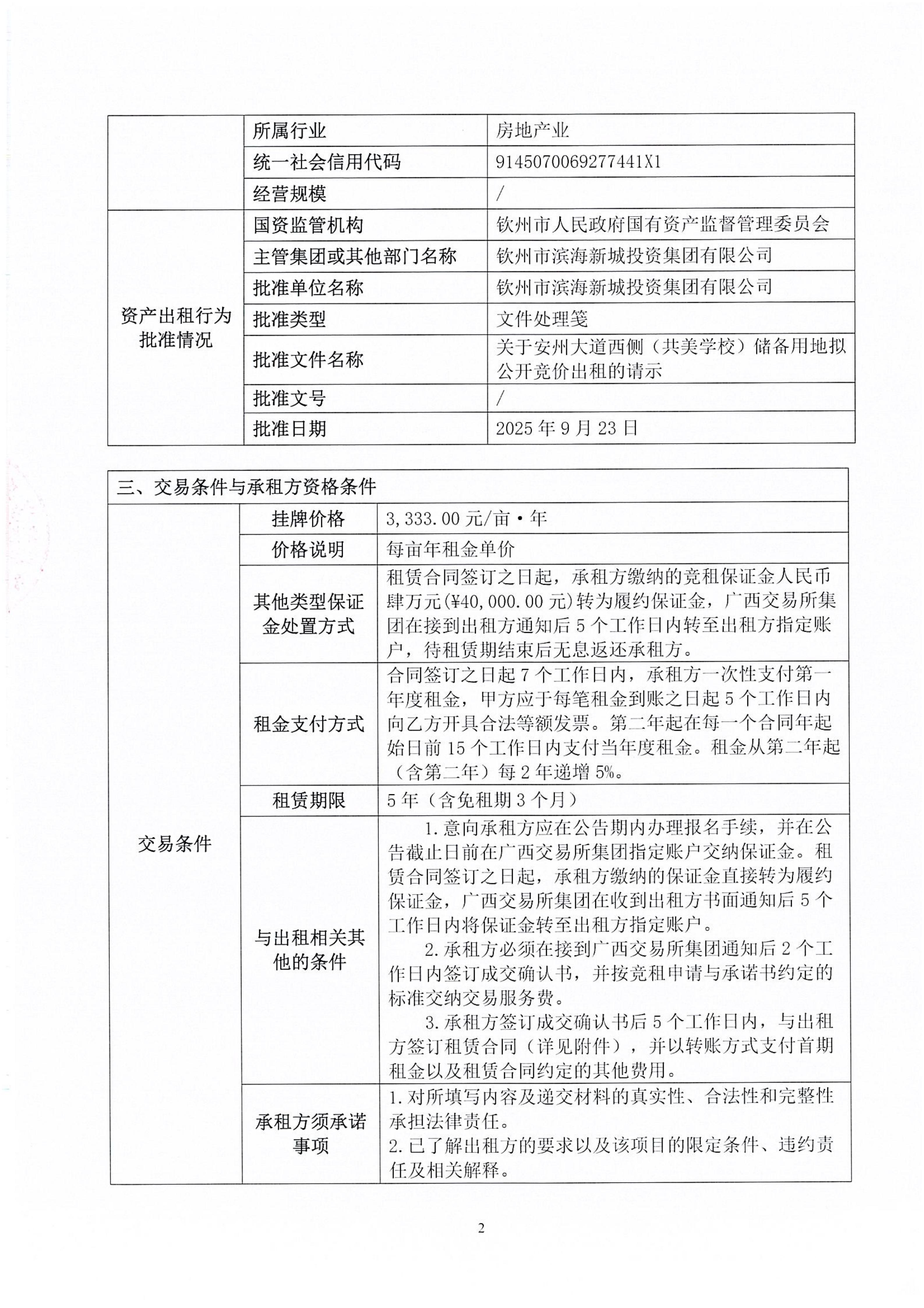 欽州市欽南區(qū)安州大道西側(cè)(共美學(xué)校)儲(chǔ)備用地公開招租項(xiàng)目