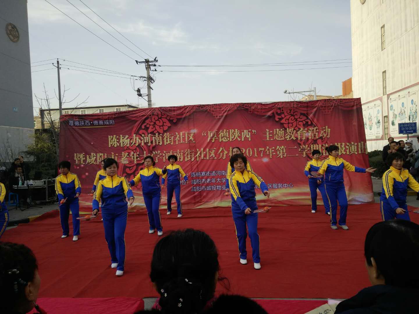 12月26日,城投物業(yè)聯(lián)合河南街社區(qū)開展“厚德陜西”主題教育活動暨咸陽市老年大學河南街社區(qū)分校2017年第二學期匯報演出活動在河南街小區(qū)舉行,來自河南街社區(qū)、市老年大學代表共計二百余人,為活動貢獻出了精彩紛呈的文藝表演。