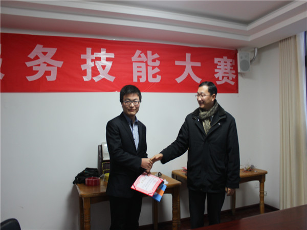 為不影響正常服務(wù)業(yè)主的工作,參賽選手由各服務(wù)中心根據(jù)實(shí)際情況推薦,重點(diǎn)凸顯青年員工。11名參賽選手在各自的項(xiàng)目中,沉著冷靜,思維明銳,業(yè)務(wù)嫻熟。工程維修項(xiàng)目的三相四線連接,為我們展現(xiàn)了公司電工扎實(shí)的接線工藝,財(cái)務(wù)收費(fèi)項(xiàng)目的手工臺(tái)賬制作,為我們展現(xiàn)了公司收費(fèi)員精確快速的計(jì)算功底,客戶(hù)服務(wù)項(xiàng)目的小區(qū)風(fēng)采展示,為我們展示了客服人員生動(dòng)的表達(dá)能力。大賽現(xiàn)場(chǎng),來(lái)賓被選手們精彩的表現(xiàn)深深吸引,為他們報(bào)以熱烈的掌聲。經(jīng)過(guò)一個(gè)多小時(shí)的緊張激烈角逐來(lái)自河南街小區(qū)的李俊杰、王威龍榮獲工程維修項(xiàng)目一等獎(jiǎng),來(lái)自安谷苑小區(qū)的李燕君榮獲財(cái)務(wù)收費(fèi)項(xiàng)目一等獎(jiǎng),來(lái)自花半里小區(qū)的陳虎榮獲客戶(hù)服務(wù)項(xiàng)目一等獎(jiǎng)。